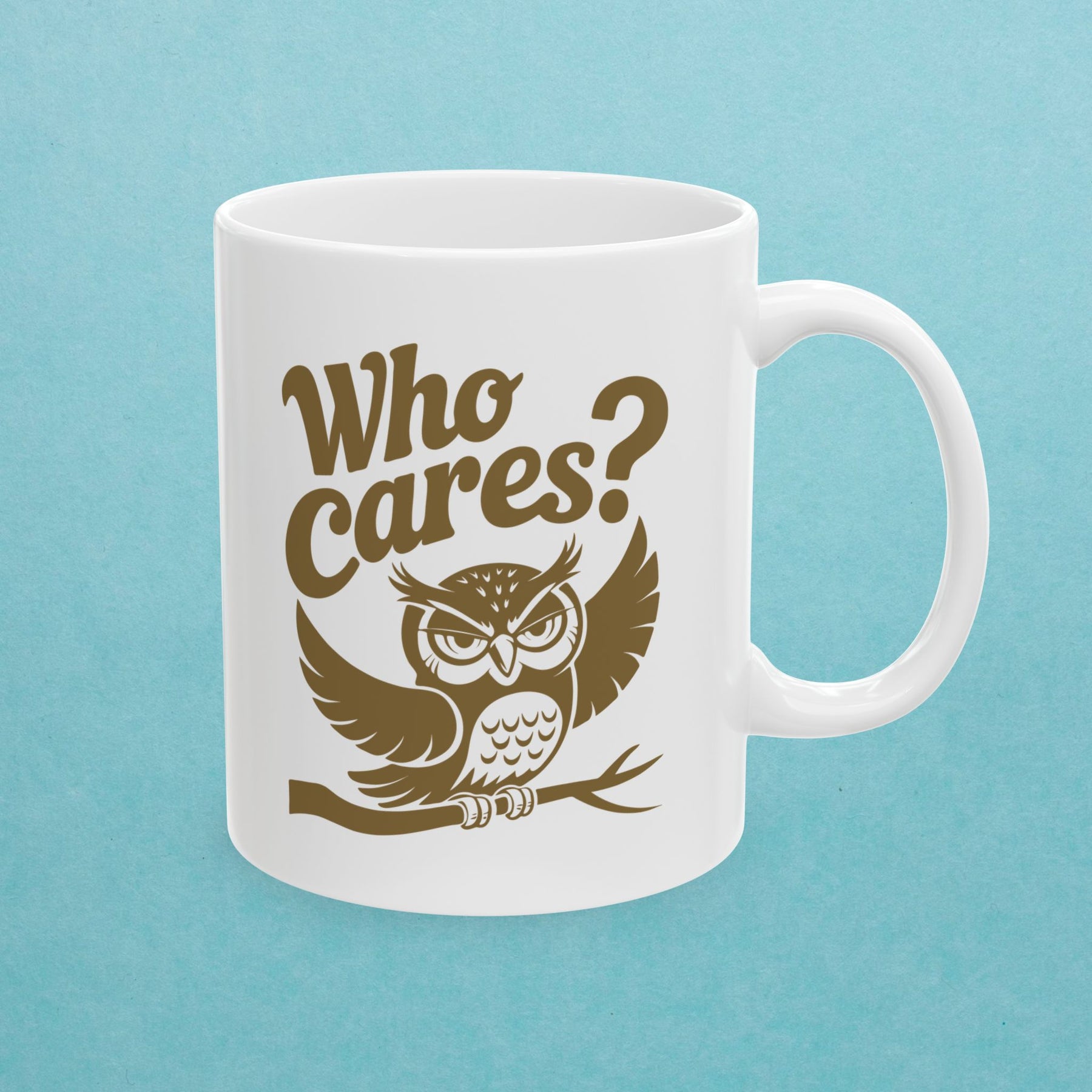 This mug is running on caffeine and apathy. “Who Cares” features an owl who’s seen it all, judged it silently, and decided it’s not worth the emotional investment. Whether you’re dodging small talk, ignoring emails, or questioning your entire life before 8 a.m., this feathered friend has your vibe covered.