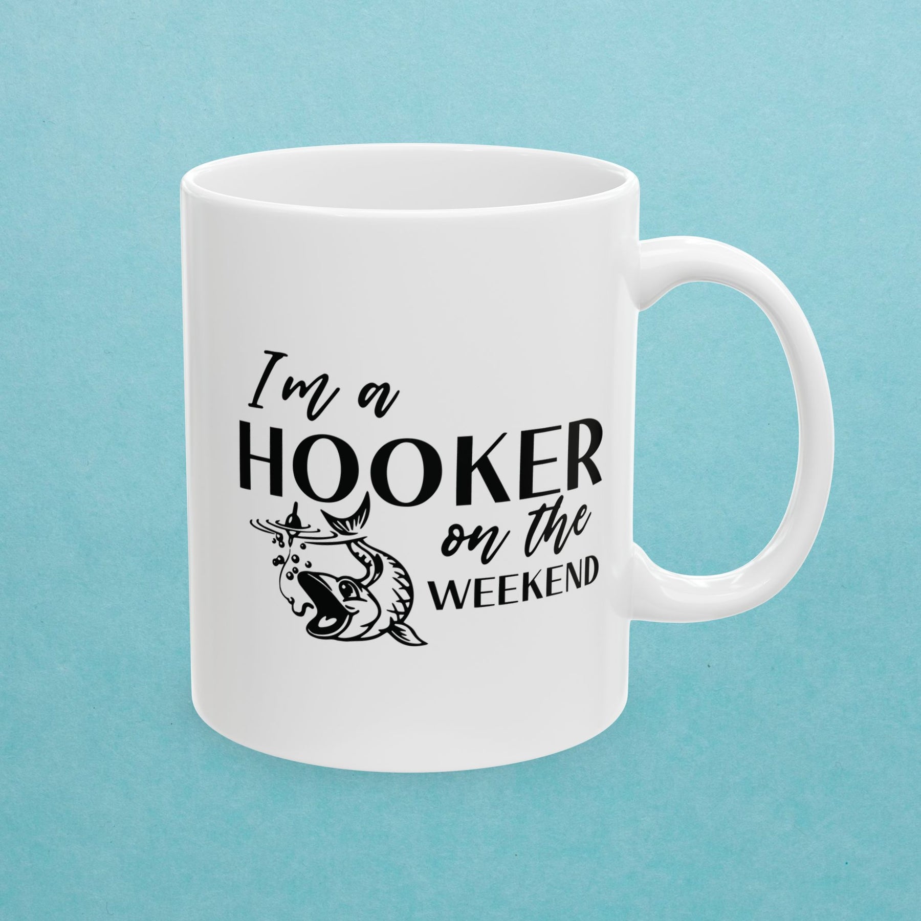 This mug isn’t here to explain—it’s here to raise eyebrows. Boldly declaring “I’m a Hooker on the Weekend,” it’s the perfect blend of innocent and totally not. Whether you're tying flies, casting lines, or just enjoying the chaos in people’s reactions, this mug hooks attention like a pro.