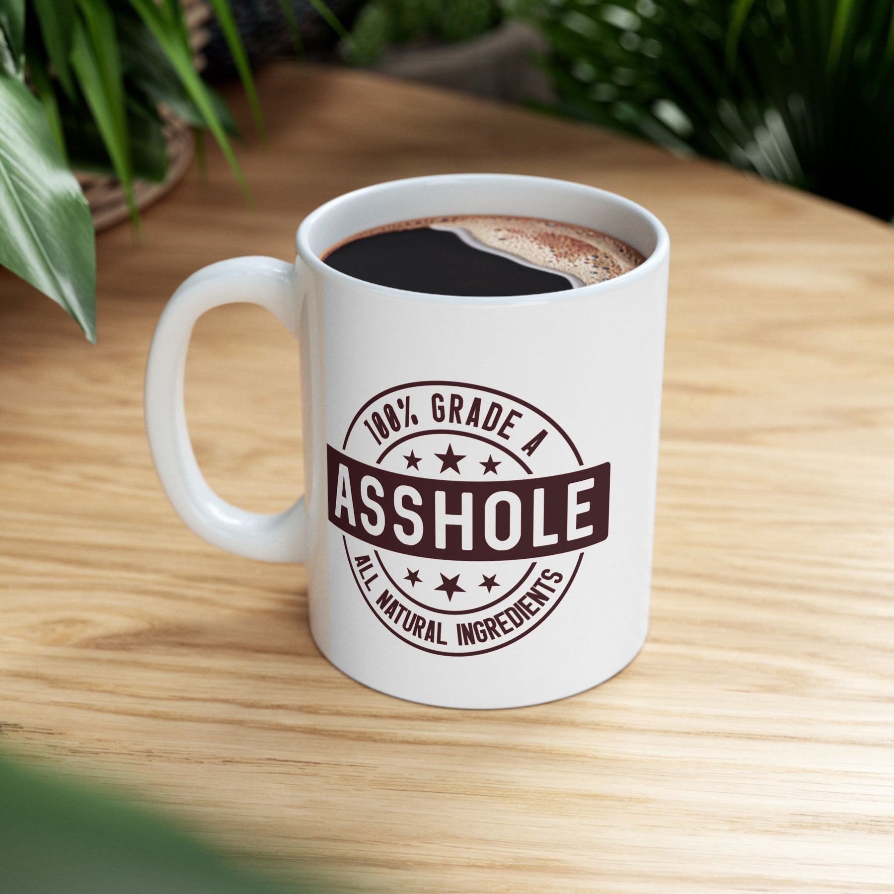 Certified. Verified. Proudly labeled. This brutally honest ceramic mug is perfect for anyone who owns their Grade-A attitude like a badge of honor. Whether you're dropping sarcasm before sunrise or just not here to sugarcoat a single thing, this mug lets the world know exactly what they’re dealing with. 100% Grade-A A**hole—because being nice is overrated and coffee tastes better with honesty.