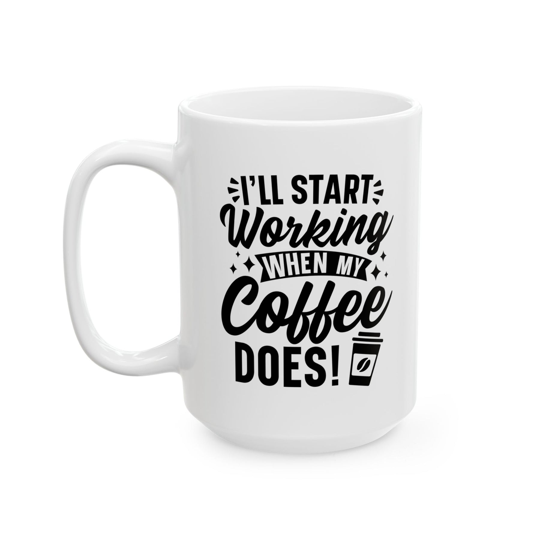 Morning light, a steady steam ribbon, and a favorite saying wrapped around your daily cup. This glossy ceramic mug brings a quiet, confident vibe to your countertop — bold black lettering against crisp white keeps the message clear without shouting. The comfortable C-handle sits naturally in your hand while the shiny finish catches the kitchen light. Choose the compact 11 oz for a focused espresso ritual or the generous 15 oz when you need an extra pour during long work sessions. Built to be part of everyday life: dishwasher and microwave safe, lead- and BPA-free, and printed with vibrant, lasting ink so the design ages with you.